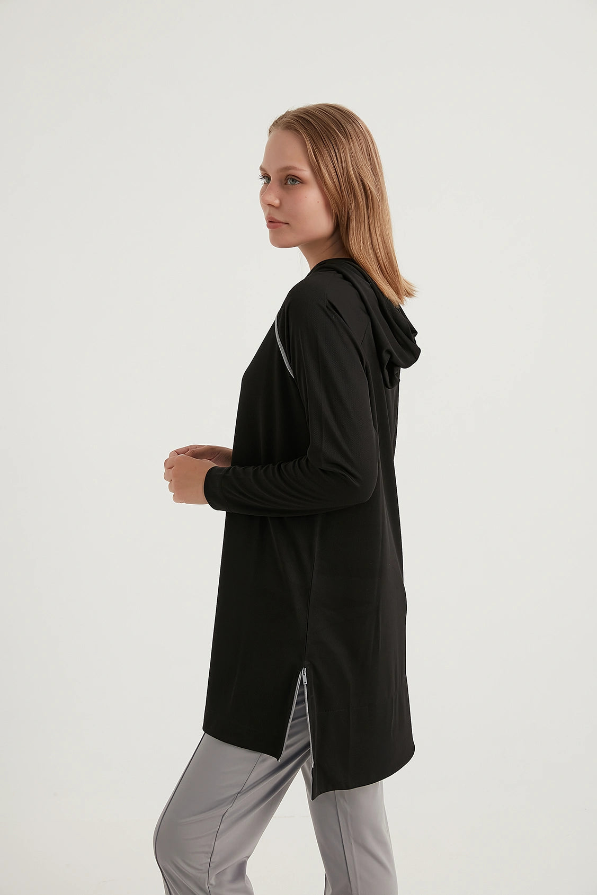 Side Zippered Hooded Quick Dry Tracksuit Top - Black